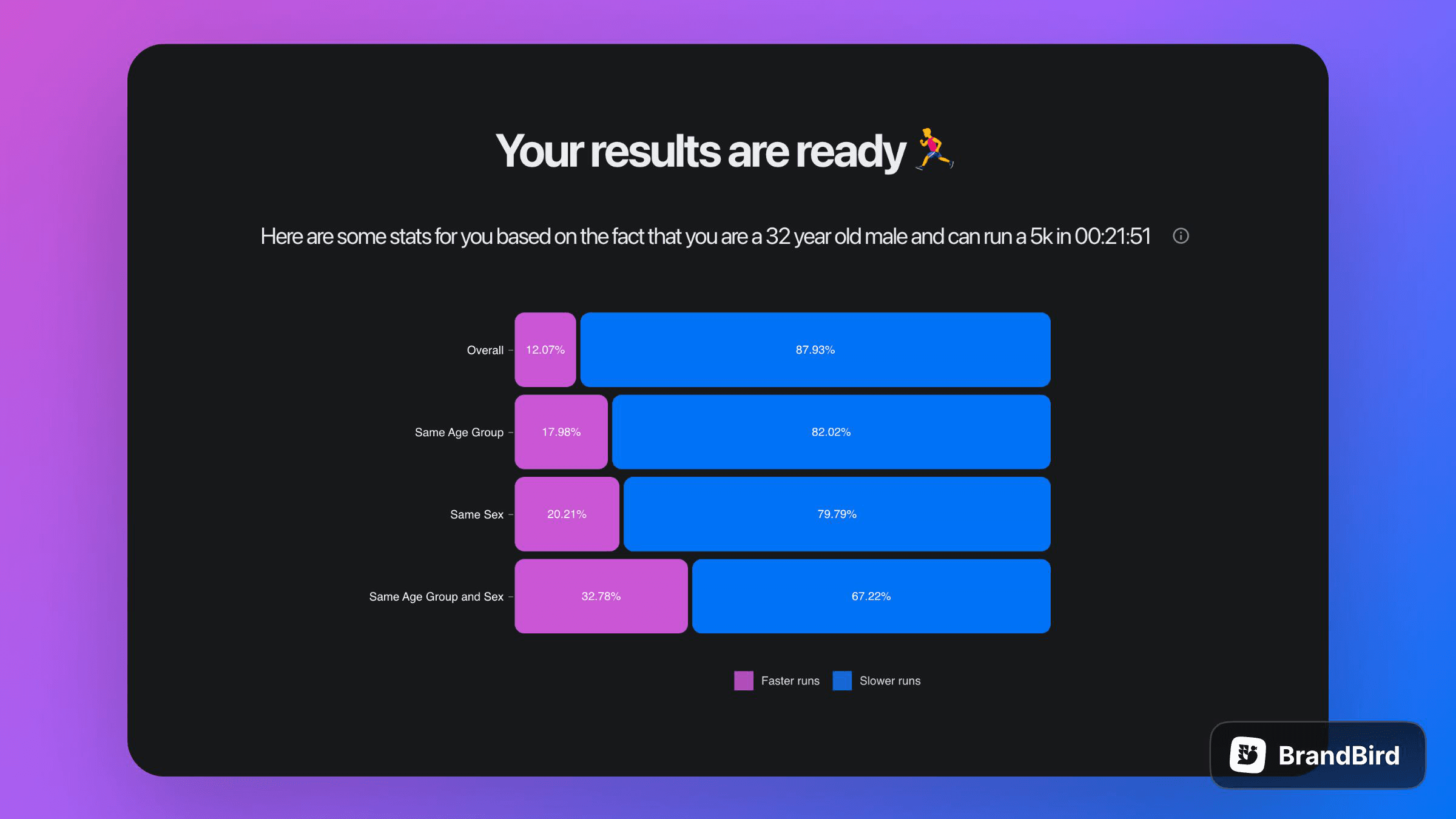 Just tell Runlytics your age, sex and race time! No name, email or sign-up required